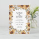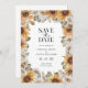 Sunflower Save The Date. Add a dash of sunshine to your wedding with these beautiful hand-painted watercolor yellow sunflowers, white daisies, and sage green and terracotta-coloured leaves. Perfect for a romantic rustic autumn or outdoor summer garden wedding, these stunning boho chic wedding save-the-date announcements will set the tone for your special day. Find coordinating products in the Rustic Watercolor Sunflower Wedding Invitations.