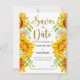 Country sunflower wedding save the date card with watercolor floral sunflower flowers.