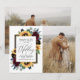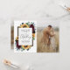 2 Photo template by default -- one of the front and on the back. You can delete the back if you just want one photo and have a plain white background or add a background of your choice. Design features elegant watercolor roses, peonies, wildflowers and sunflowers in various shades of burgundy red, navy blue and more over a wreath of eucalyptus greenery. Design also features a barn wood frame underneath the wreath. Matching collection found here: https://www.zazzle.com/collections/sunflower_and_roses_burgundy_wedding_invitations-119675824301740398