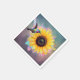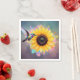 A Vibrant hummingbird hovers near a bright yellow sunflower. Its long beak reaching for nectar. The sunflower's dark centre and green stemmed a natural touch, while the hummingbird's iridescent feathers shimmer in shades of green and blue. The simple bad lines and bright colours create a charming and uplifting scene, perfect for nature lovers and flower enthusiasts.