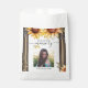 In Loving Memory Remembrance Thank You Seed Gift Bag. The Sunflower artwork was hand drawn and painted with watercolors. Background leaves were hand drawn and digitally coloured. Sweet and slightly rustic sunflower design. Easy to use template. Artwork by Valarie Wade. All text is adjustable. Just add your own obituary text and upload your own photo.