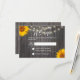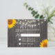 Sunflower & String Lights Barn Wood Wedding RSVP Announcement.