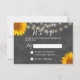Sunflower & String Lights Chalkboard Wedding RSVP Announcement.