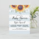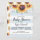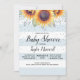 This rustic fall sunflower baby shower invitation features blue stripes with floral watercolor sunflowers on the front and patterned on the back. Sunflowers are popular this year for a fall themed baby shower.