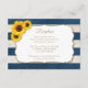 Rustic wedding reception card with sunflowers and navy blue stripes. Great for country barn weddings or any other vintage style summer occasion.