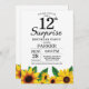 Sunflower Surprise 12th Birthday Invitation. Floral Flowers and White Background. Country Vintage Retro. Kids Girl Birthday. 12th 13th 15th 16th 18th 20th 21st 30th 40th 50th 60th 70th 80th 90th 100th, any ages. Printable Digital. For further customisation, please click the "Customise it" button and use our design tool to modify this template.