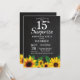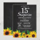 Sunflower Surprise 15th Birthday Invitation. Floral Flowers and Chalkboard Background. Country Vintage Retro. Kids Girl Birthday. 12th 13th 15th 16th 18th 20th 21st 30th 40th 50th 60th 70th 80th 90th 100th, any ages. Printable Digital. For further customisation, please click the "Customise it" button and use our design tool to modify this template.