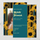 Sunflower Teal Blue Gold Modern Wedding Invitation