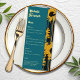 Sunflower Teal Blue Gold Modern Wedding Menu