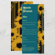 This bold modern teal blue and gold sunflower wedding menu features artistic sunflower silhouettes with integrated teal accents and luxe striped patterns, creating an elegant table setting that ties your entire celebration together. Clean typography presents your couple names, dinner selections, and beverage offerings in an easy-to-read layout that guests will appreciate.