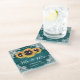 Sunflower Teal Rustic Wood Lace Wedding Glass Coaster