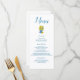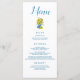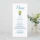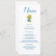 List your wedding reception menu using this gorgeous, trendy sunflower themed design. Featuring "Menu" written at the top using cursive blue font, all of your information is printed in blue readable font on a white background. Customise as you choose.