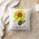 Express yourself and show your joy of being surrounded by sunflowers. The amber colour petals and red-orange centres bring a warmth to the design. You can change or remove the text and change the background colour to personalise this pillow.