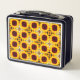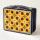 Do you like kaleidoscopes, mosaics, tiles, and sunflowers? This fresh-from-the-garden lunchbox features a sunflower image that's been spun into an abstract geometric pattern that's unique and colourful. Take a bit of late summer with you, wherever your lunch goes. This fresh-from-the-garden design is a great way to remember those long, late summer days, anytime of the year. This lunch box is shown with black trim but you can opt for different colours if you prefer.
