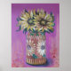Watercolor and acryl painting, representing a vintage painted vase full of fresh sunflowers.