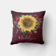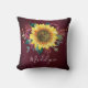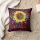 Sunflower Watercolor Floral Lights Burgundy Cushion