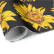 Sunflower Watercolor Flowers Black Wrapping Paper