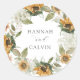 Seal your invitation envelopes or favours with these classic wedding stickers. Featuring your names framed by a watercolor wreath of greenery and sunflowers. Coordinates with the Late Summer Sunflower wedding collection found in the Adore Paper Co. Zazzle Shop.