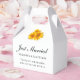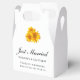 Create a warm and inviting atmosphere at your wedding or next event by using these delightful yellow sunflower boxes. The boxes showcase beautiful sunny yellow flowers, highlighting your wedding details printed in elegant script and easy-to-read fonts. These favour boxes are perfect for a variety of events, including summer, spring, and country bridal showers, fall and garden botanical weddings, parties, and fundraisers. These boxes are cute for personalised gifts or small trinkets. Please scroll down to view matching products and gifts that you may enjoy.