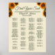 Introducing our exquisite sunflower themed wedding seating chart poster, a perfect choice for couples seeking a rustic, country touch. This enchanting seating chart captures the beauty of sunflowers accentuated with charming forest green details. The vibrant sunflowers symbolise joy, happiness and blossoming love, setting the perfect tone for your special day, The lush forest green colour adds a touch of rustic charm, reminiscent of lush meadows and the tranquillity of the countryside. This chart is totally customisable. Enter your names and table numbers from the product page, or to have more control over fonts styles, colours or resizing, use the design tool for total control.