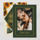 Introducing our exquisite sunflower themed wedding Thank You card, a perfect choice for couples seeking a rustic, country touch. This enchanting Thank You card captures the beauty of sunflowers accentuated with charming forest green and faux gold details. The front of the card features your custom photo for a personal touch and Thank You phrase. The lush forest green colour adds a touch of rustic charm, reminiscent of lush meadows and the tranquillity of the countryside. The delicate faux gold accents bring an element of sophistication and glamour, elevating the overall design to create a truly captivating ensemble. This product is part of our Sunflower Wedding Forest Green and Gold Rustic Wedding ensemble. Go to this collection to select everything you need to have a beautifully cohesive wedding. Edit text and photo from the product page or use the design tool to change font styles or colours.