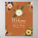 Elegant, modern, rustic terracotta wedding welcome poster with monogram initials, yellow sunflower, watercolor pink flowers and greenery. Perfect choice for romantic fall weddings!