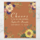 Elegant, modern, rustic terracotta wedding wine label with watercolor sunflower, pink flowers, greenery.