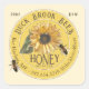 A square yellow label with vintage sunflower illustration and realistic bees. The word "Honey" is written in a decorative brown font.