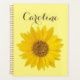 A photograph of a single sunflower and a template for first name in dark brown on light yellow background.