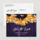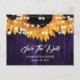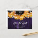 Rustic purple and sunflower wedding save the date postcards featuring sunflowers and string lights on a rustic wood background. Matching items available.