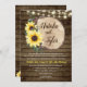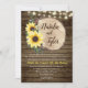 Sunflower Wood Slice Rustic String Lights Wedding Invitation