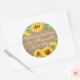 Sunflower Wreath On Burlap Look Guest Favour Classic Round Sticker