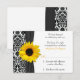 Sunflower Yellow Black Damask Wedding RSVP Reply Card