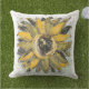 Sunflower Yellow Green Black Watercolor Style Art Cushion
