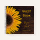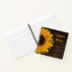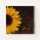 Sunflower yellow rustic wedding country brown wood grain dinner reception square spiral keepsake guest book. Beautiful simple custom printed flower design. Image copyright Marg Seregelyi Photography.