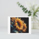 Vibrant sunflowers display swirling, dynamic strokes of orange and yellow, contrasting with deep blue and black hues. The composition conveys a sense of movement and energy, with a signature in the upper corner.