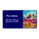 Colourful ,whimsical Tuscany landscape with flower fields and black rooster in yellow,red fuchsia,green,purple,blue colours. Acrylic painting on canvas.Cool,artistic design for Summer holiday parties ,family reunions,,anniversary ,birthday parties or just about any event you wish !