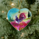 SUNFLOWERS AND BLACK ROOSTER Heart Ceramic Tree Decoration