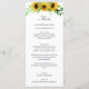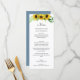 Menu, featuring a modern and romantic floral design with yellow watercolor sunflowers and a blush blue back with a white front.