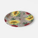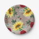 Sunflowers and Burgundy Red Roses Rustic Fall Paper Plate