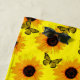 Pictured are yellow sunflowers and butterflies