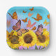Sunflowers and Butterflies Colourful Yellow Brown Paper Plate