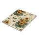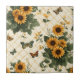 A cheerful and charming pattern featuring vibrant sunflowers and delicate butterflies set against a light yellow background with subtle crisscross lines. This ceramic tile radiates warmth and positivity, evoking the carefree essence of late spring and summer days. Its soft, rustic colour palette and organic layout make it perfect for seasonal themes, country-inspired motifs, and sunny nature aesthetics.