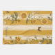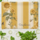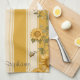 A cheerful and charming pattern featuring vibrant sunflowers and delicate butterflies set against a yellow vertically striped background. This kitchen towel radiates warmth and positivity, evoking the carefree essence of late spring and summer days. Its soft, rustic colour palette and organic layout make it perfect for seasonal themes, country-inspired motifs, and sunny nature aesthetics.
