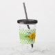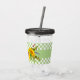 This country / farmhouse design has a beautiful and bright yellow watercolor sunflower bouquet and pastel green and white chequerboard.