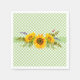 This country / farmhouse design has a beautiful and bright yellow watercolor sunflower bouquet and pastel green and white chequerboard.
