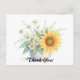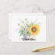 A summertime bouquet of white daisies and a single yellow sunflower creates a sweet, country style thank you postcard.