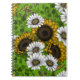 Hand-drawn vector pattern with bouquets of sunnflowers, daisy, camomille and eucalyptus