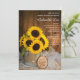 Invite guests to a summer or fall pre marriage party honouring the bride to be with the charming Sunflowers and Garden Watering Can Bridal Shower Invitation. This casual yet classy custom rustic chic Wedding Shower Invite features a quaint floral photograph of a bouquet of yellow sunflower blossoms in a silver metal watering can, white bridal veil, vintage lace trimmed linen handkerchief and natural wood slice with the word LOVE burned on it with a burlap and weathered brown barn wood background. Perfect inspo or idea for a casual country farm style celebration event. Available as a printed invitation for mailing or as a digital download for easy sharing digitally online.