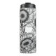 Sunflowers and goldfinches in black and white thermal tumbler